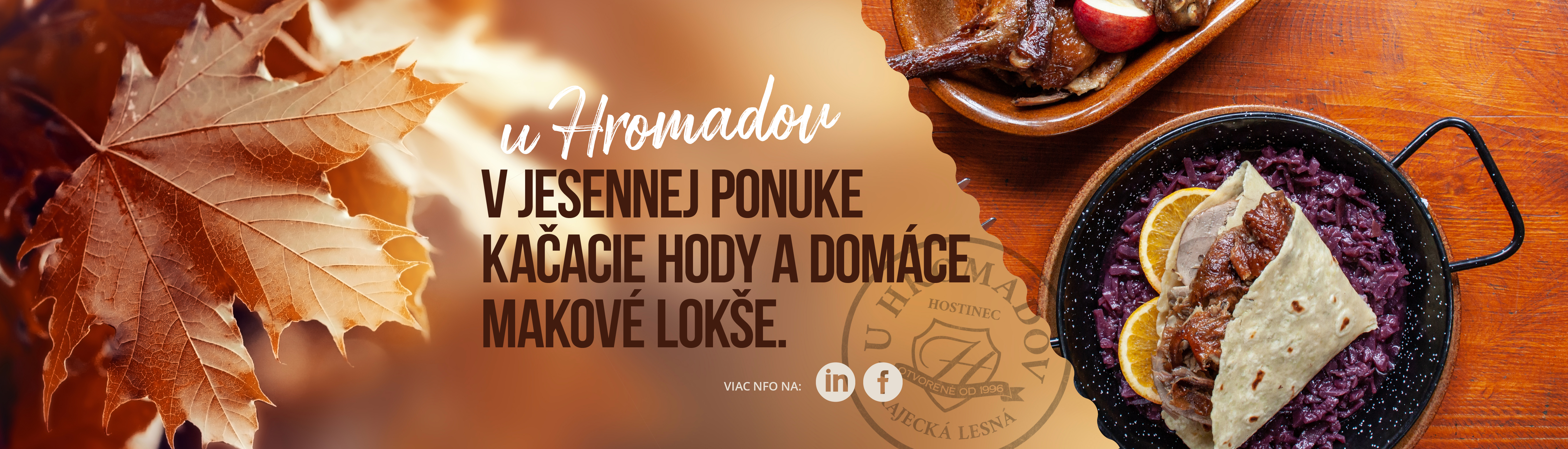 V Hostinci u Hromadov otvorenom od stredy do nedele (15 m od Prázdninového domu Eliška) je možné doobjednať si raňajky v cene 8,00 € na dospelú osobu ( 6,00 € dieťa do 13 rokov) alebo využiť služby tejto reštaurácie a vybrať si z domácich polievok, miestnych jedál alebo pizze, domácich koláčov a dezertov, limonád, poctivého piva alebo výberových káv.